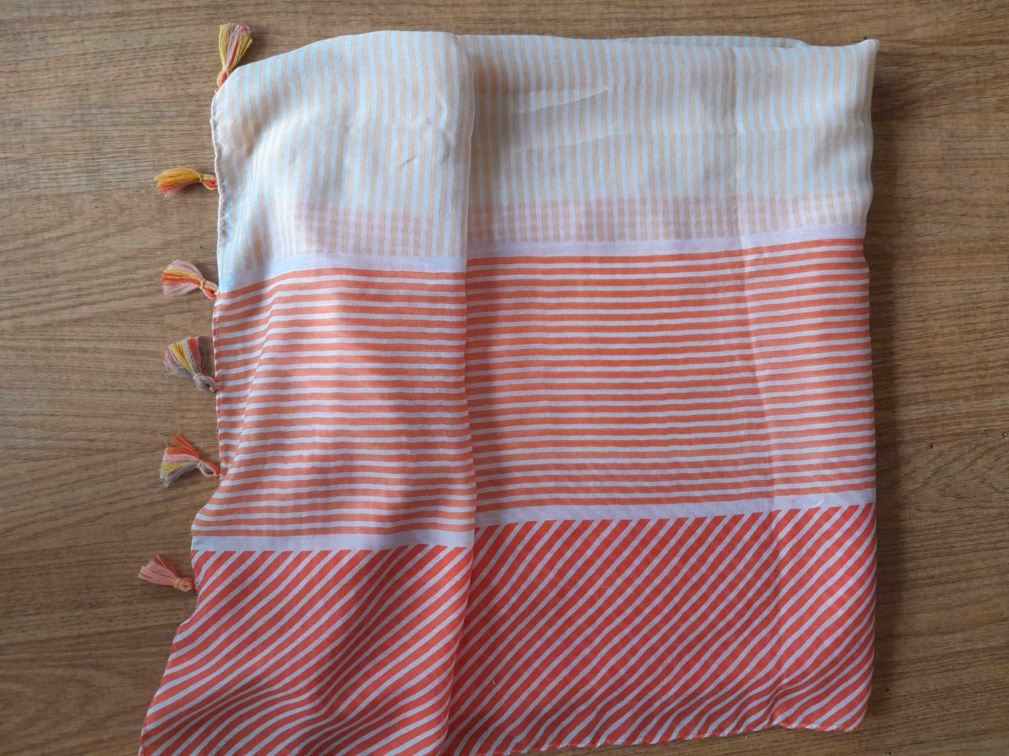 Skjerf i rødt med dusker 179,- Deilig bomullskjerf med dusker. Bunnen er Hvit, med lys gule, oransje og beige striper. På lager Legg i handlekurv Del Lagerbalanse: 2 Informasjon Tilbakemeldinger Deilig bomullskjerf med dusker. Bunnen er Hvit, med lys gule, oransje og beige striper.